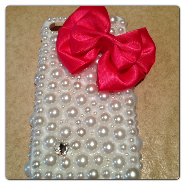 This iPhone 4/4s custom pearl case and fabric hot pink 3d bow is a must have!! This case consists of a pearl design and a fabric bow! Great item!